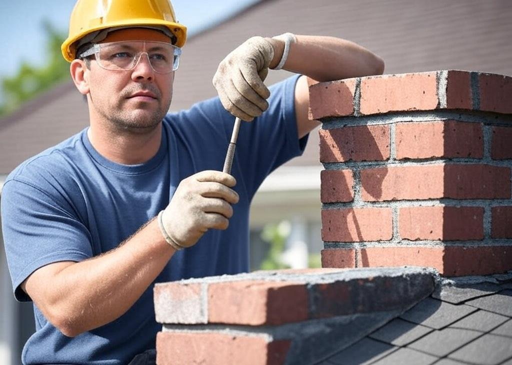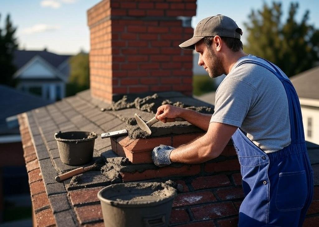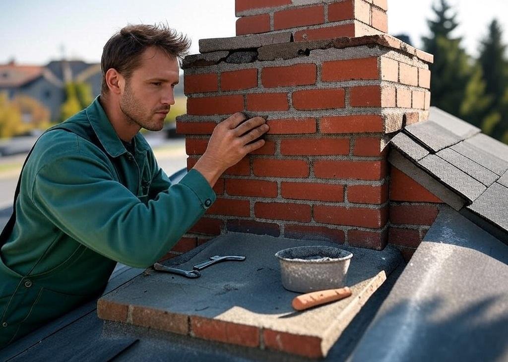 Cracked bricks or missing mortar require immediate chimney repair.